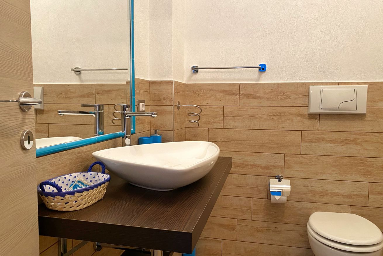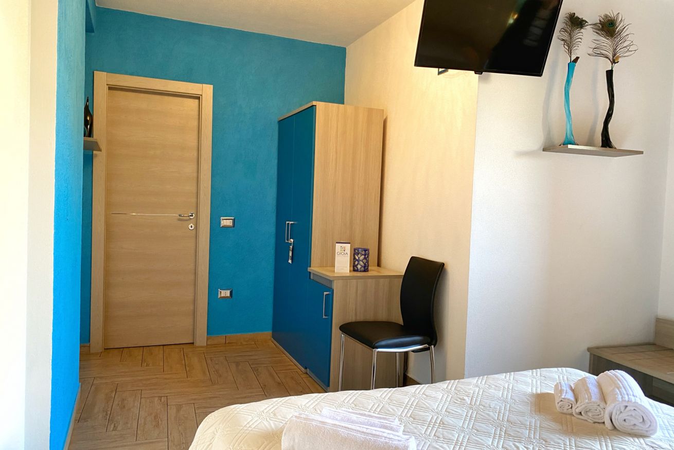 La camera Zaffiro si trova al piano terra, è dotata di materassi e cuscini in memory, climatizzatore caldo/freddo, televisore, asciugacapelli, bagno in camera. Al secondo piano è disponibile per gli ospiti la zona relax comune con libreria.